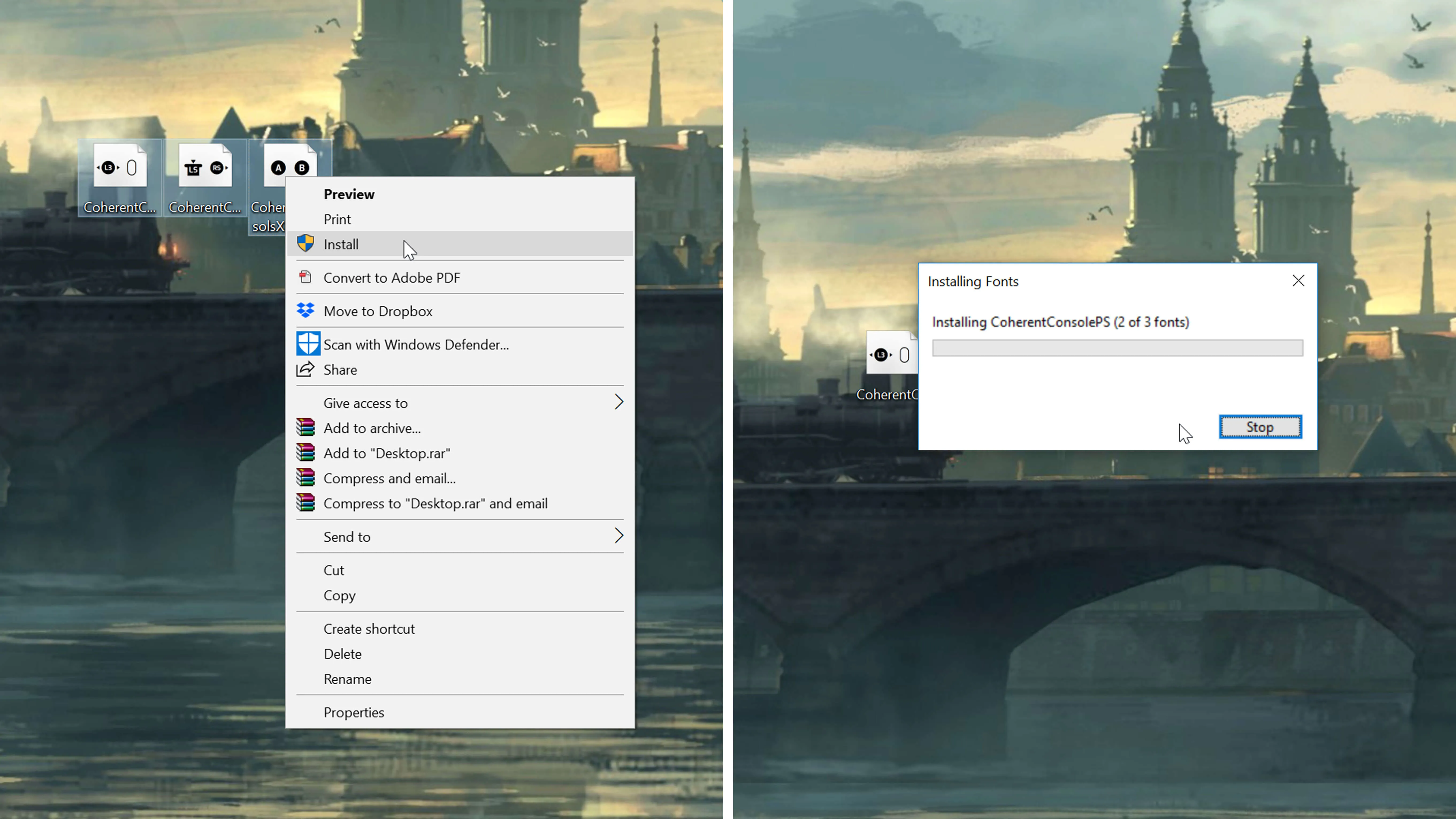 To install Coherent Console Fonts on MacOS, open Font Book, then drag and drop the files into the app. You’re done.
