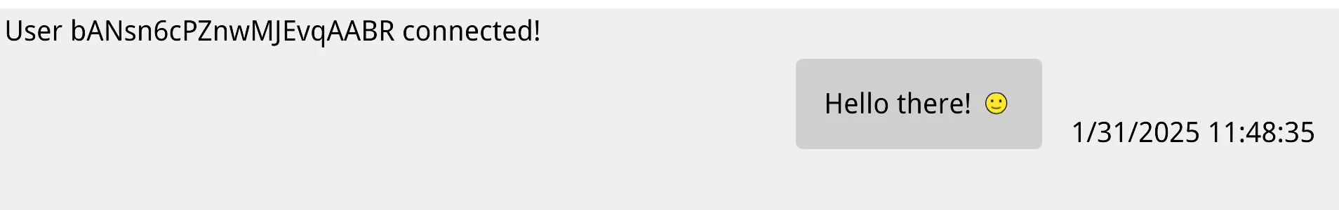 12 io.emit('chat message', { msg: `<div class="message">${newMessage}</div><div class="timestamp">${timeStamp}</div>`, id: socket.id });13 io.emit('chat message', { msg: `<div class="message">${msg}</div><div class="timestamp">${timeStamp}</div>`, id: socket.id });14});By eliminating the need for SVG replacements, we simplify the server logic and improve performance.