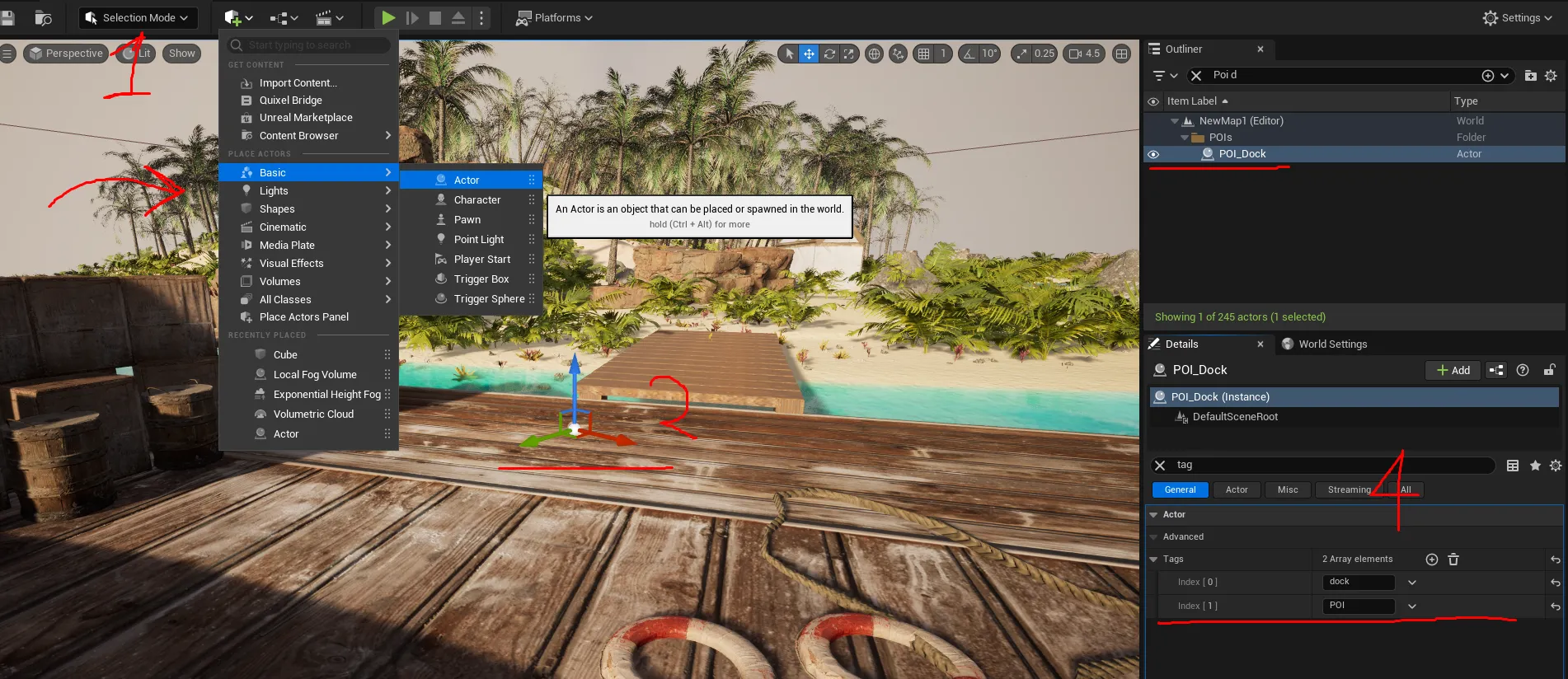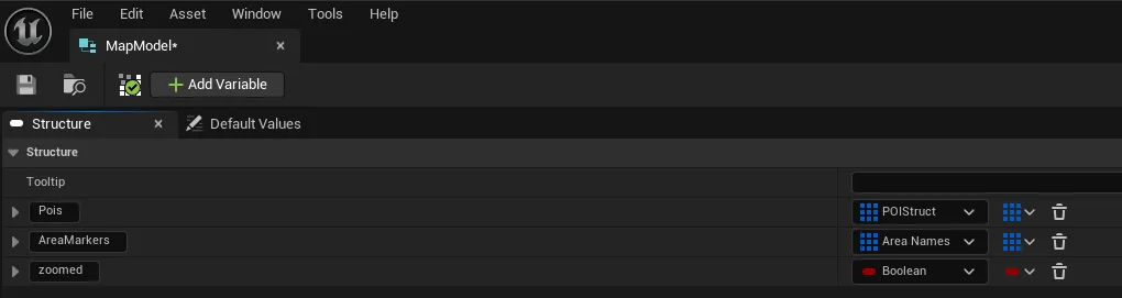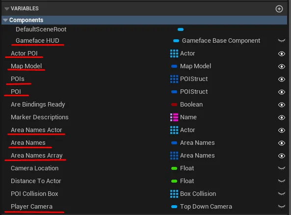 POIStructtype, which we will use to map POI data and add it to the POIs array. - Area Names Actor - Same purpose as the Actor POI variable but for the area markers.