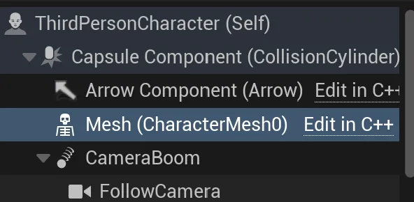 This sets the default mesh for the character and enables animations via the ThirdPerson_AnimBP_C class.