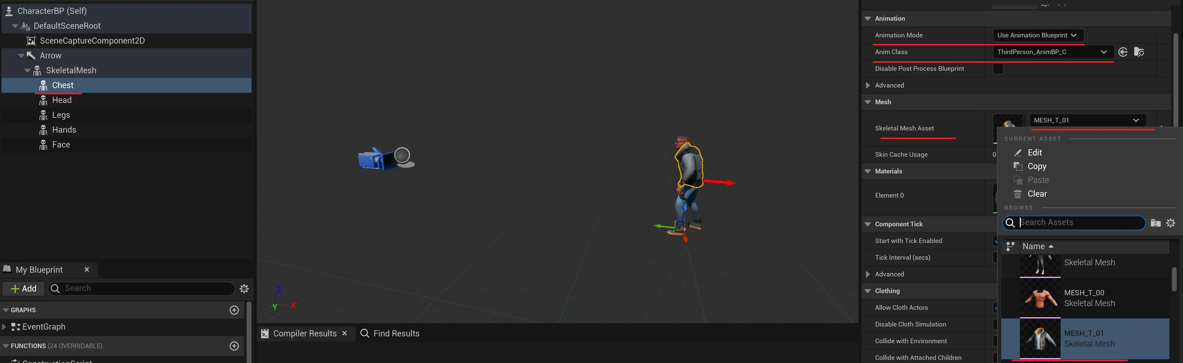 • Change the Skeletal Mesh Asset to one of the chest meshes, e.g., MESH_T_01.