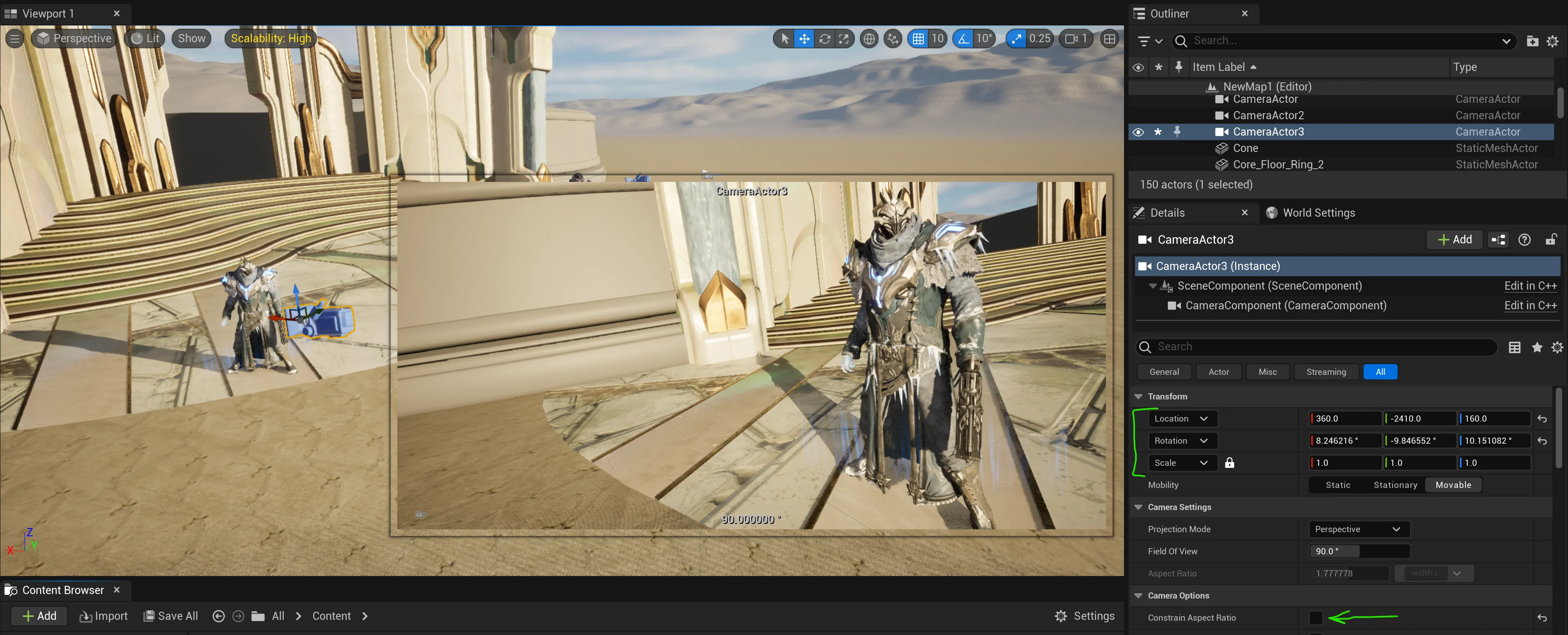 Feel free to adjust the Location, Rotation, and Scale of the camera to achieve precise positioning.