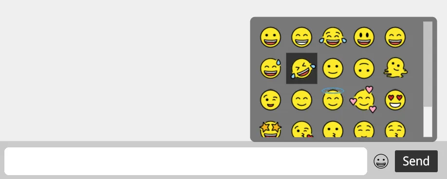 This sample focuses on how to send and show emojis in the chat, as Gameface does not currently support OS emojis natively. And it has the added bonus of allowing you to use your own custom emojis. One straightforward method is to use SVG emojis. For this sample, we used a small set of SVG emojis from OpenMoji to demonstrate the simplest way of adding emoji support to a chat in Gameface.