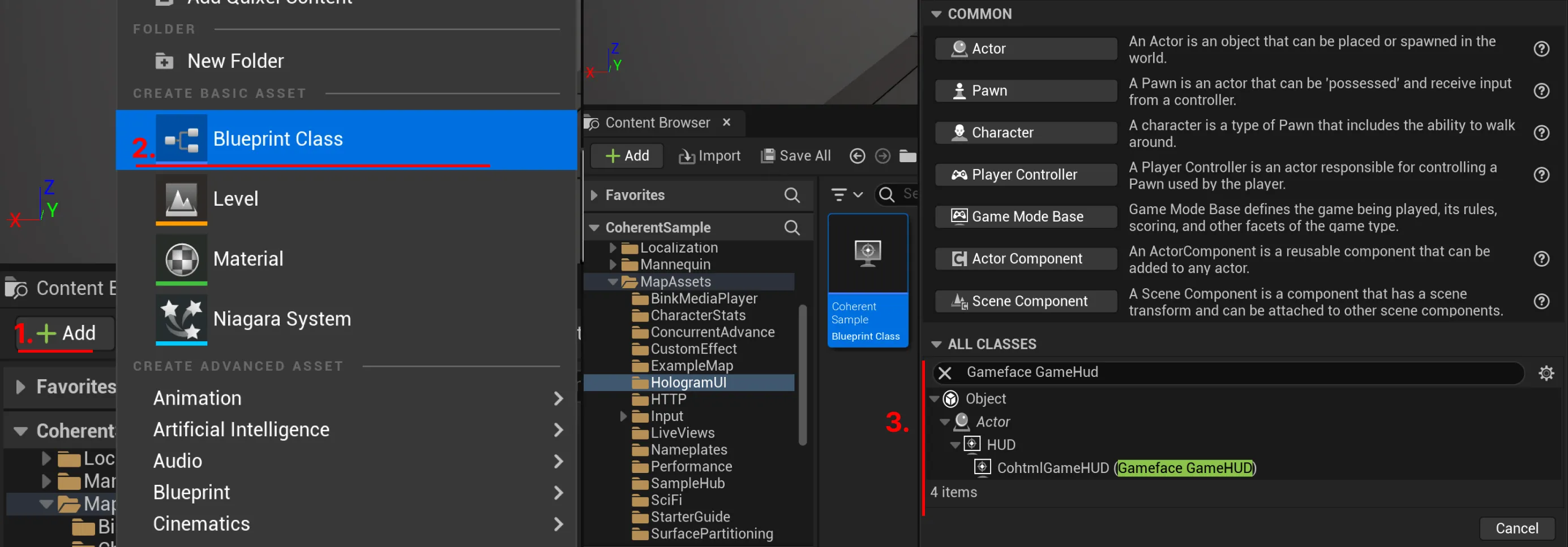 Gameface GameHudorCohtmlGameHUD, and select it. - Name the class