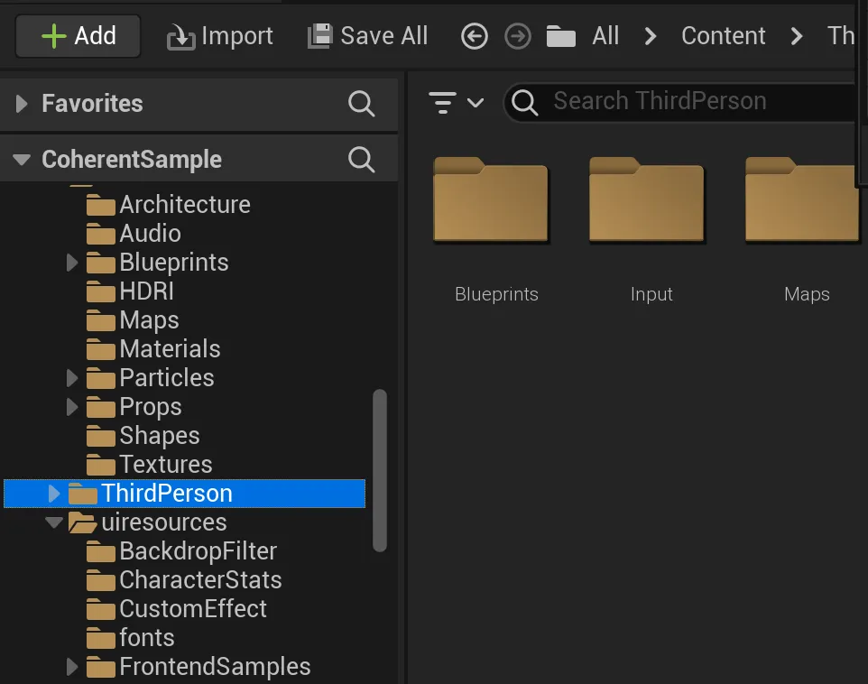 Once added, you’ll see a new folder for the Third Person Character in your project structure.